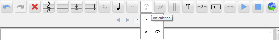 - The toolbar lets you change the properties of one or several selected notes (e.g. accidental, articulation, or duration).